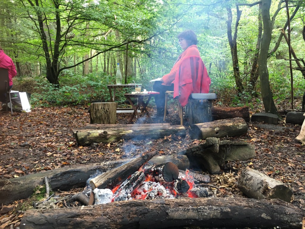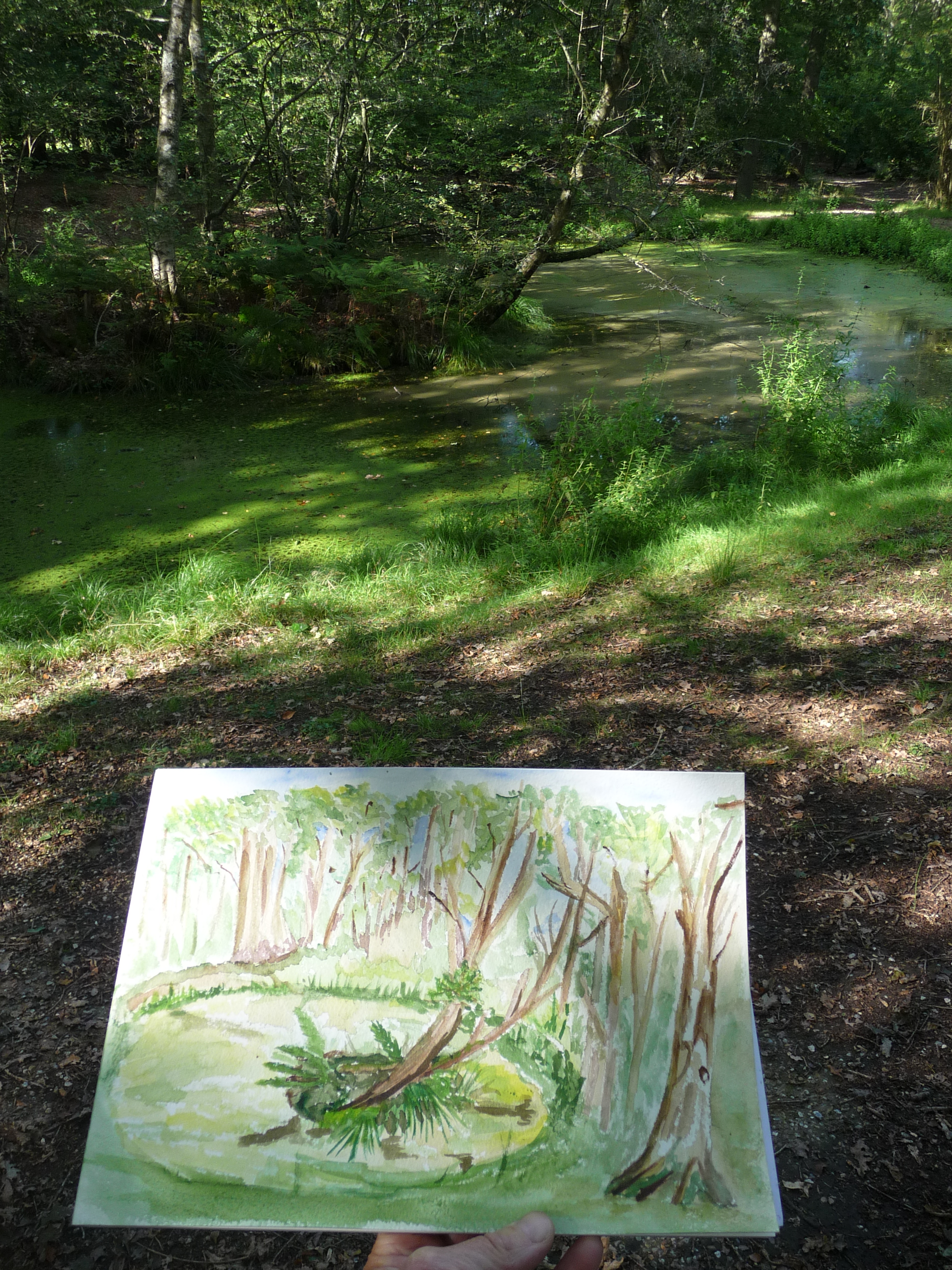 Philippa’s seasonal paella followed by blackberry and apple crumble was so delicious that we had to remind ourselves about the painting, and the painters were gently encouraged out into the woods where September sunshine was now slanting through the trees.